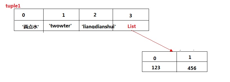 tuple1=('两点水','twowter','liangdianshui',[123,456])