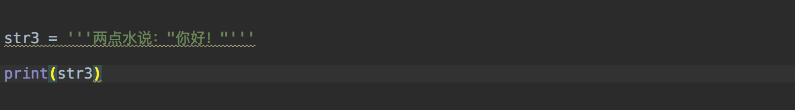 至于三引号,也是一样的,如果字符串内容里面含有双引号,也是会报同样的错误的。那么这时候你就可以用三引号了。
