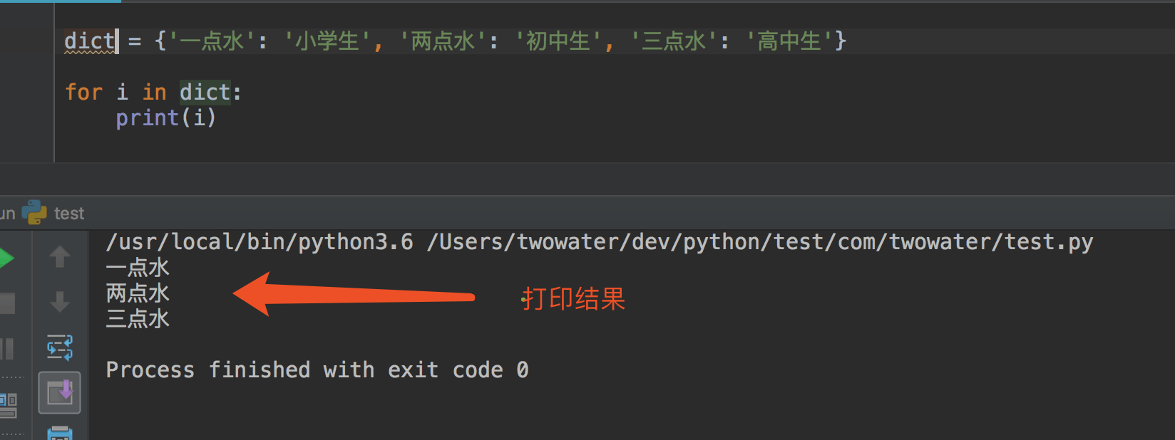 你会发现只打印了字典 dict 中的每一个 key 值。