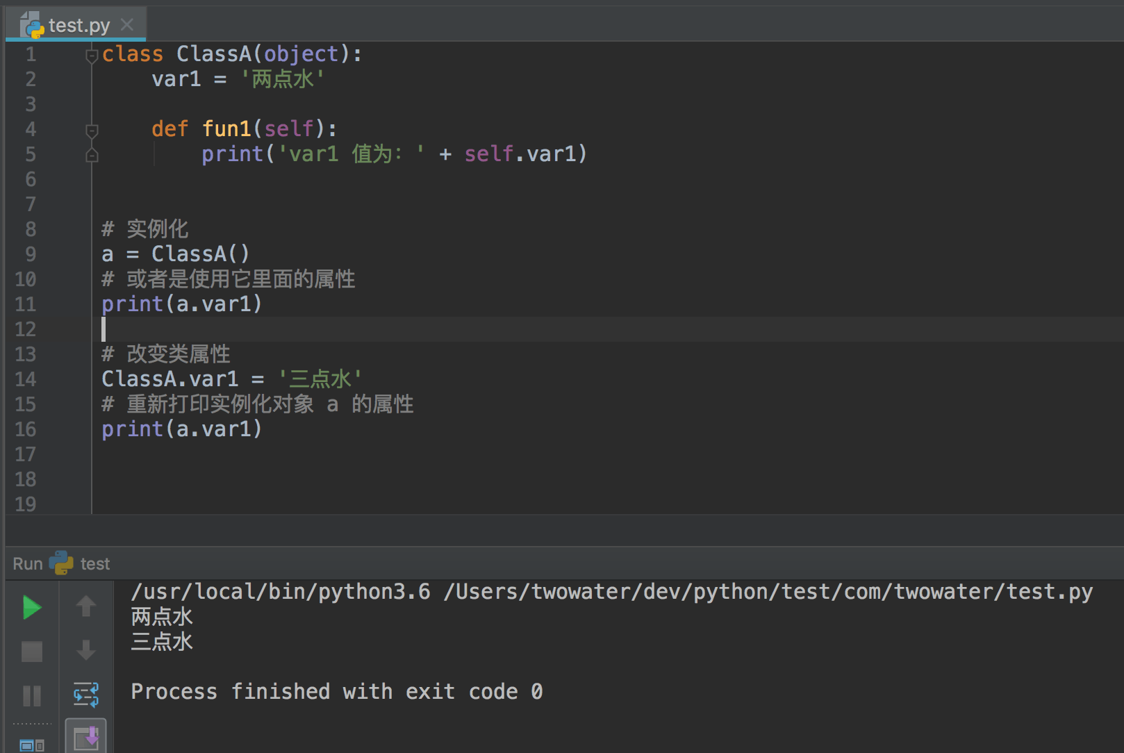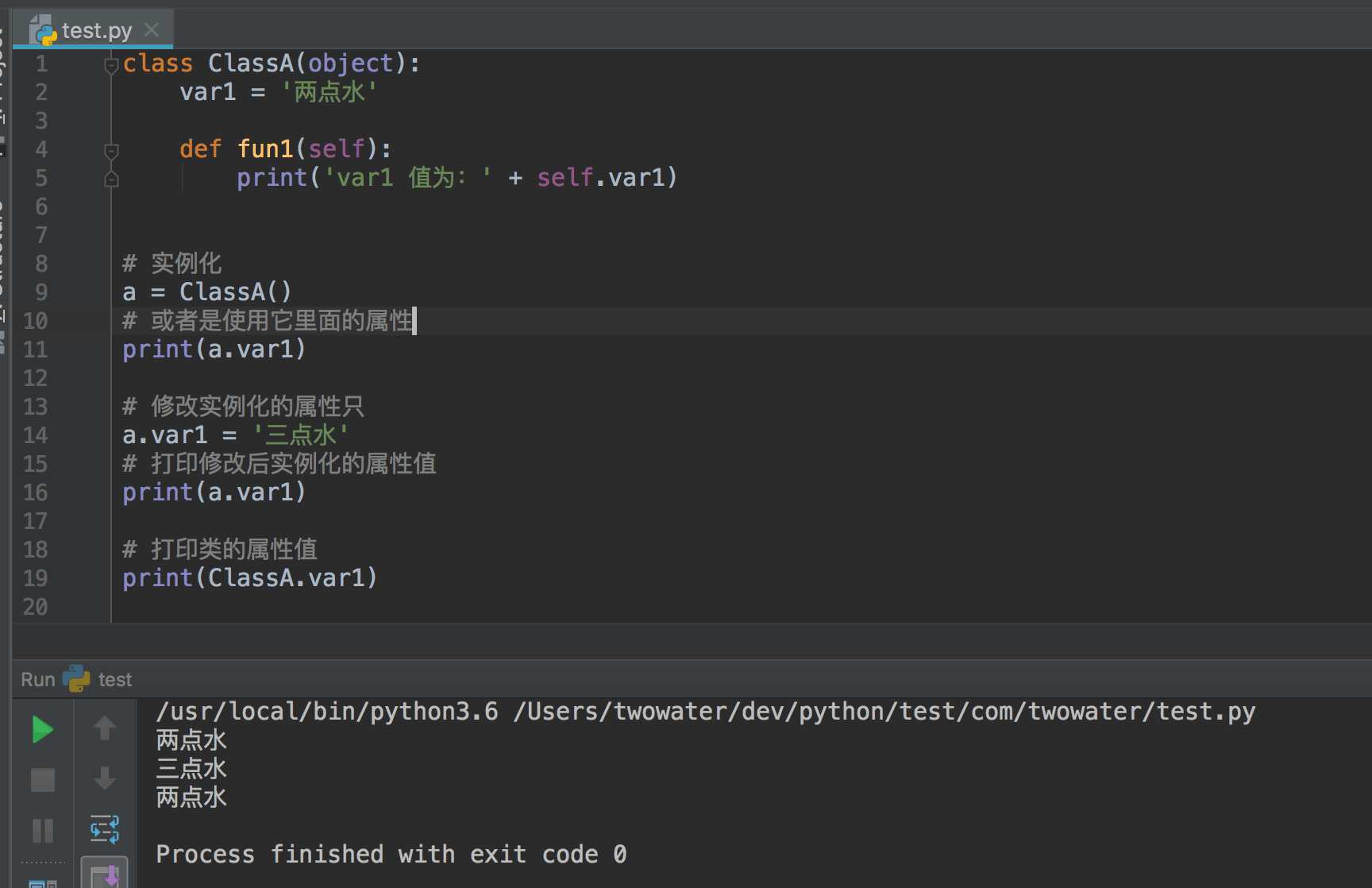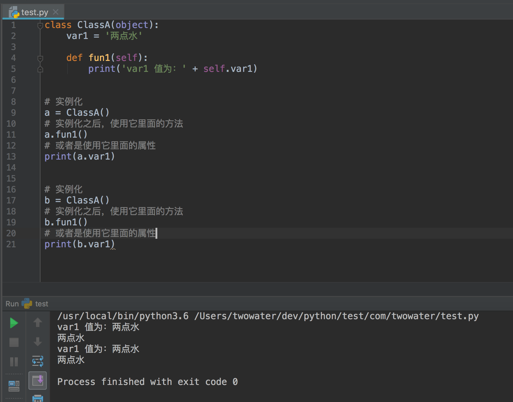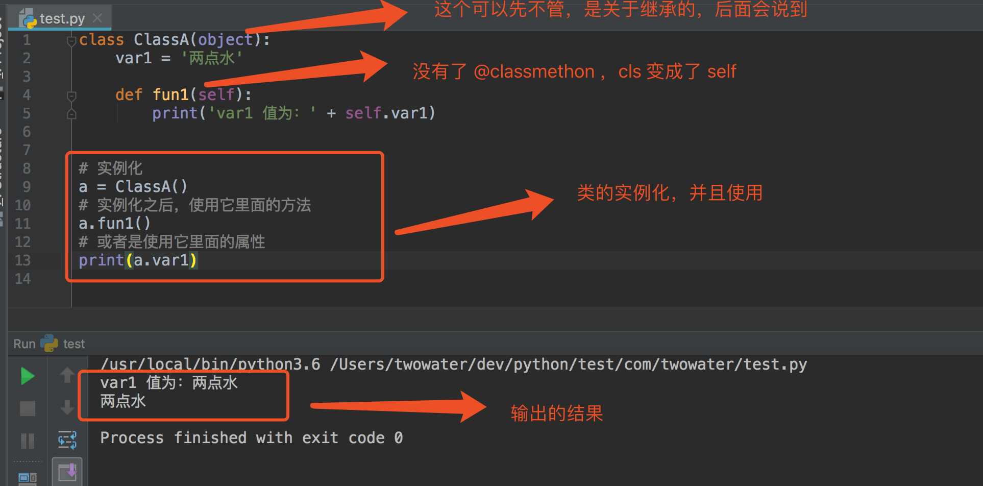 除此之外,在这里,还要强调一个概念,当你把类实例化之后,里面的属性和方法,就不叫类属性和类方法了,改为叫实例属性和实例方法,也可以叫对象属性和对象方法。