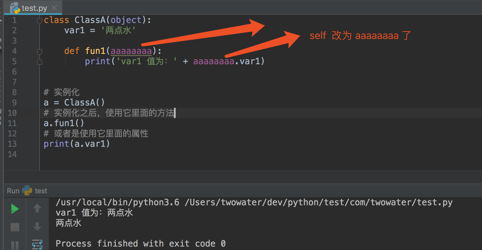 你看,把 self 改为 aaaaaaaa 还是可以一样运行的。