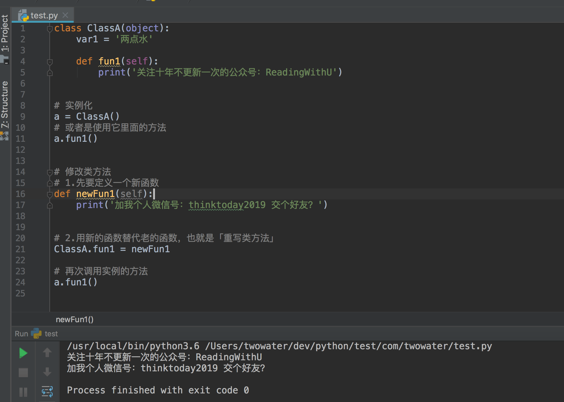 我们使用了 类.原始函数 = 新函数 就完了类的重写了。