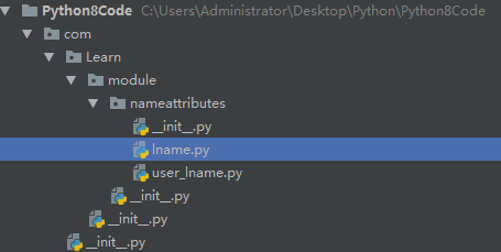 比如最开始的例子,就引入了包,这样子做就算有相同的模块名,也不会造成重复,因为包名不同,其实也就是路径不同。如下图,引入了包名后, lname.py 其实变成了 com.Learn.module.nameattributes.lname